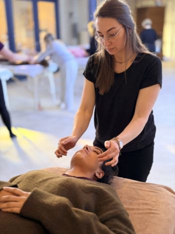 - Daarna draai je naar buikligging en start het meer integratieve deel van de sessie. Hierin mag je vooral ontspannen en ervaren wat er in je lichaam gebeurt, terwijl het systeem op een dieper niveau spanning kan loslaten.